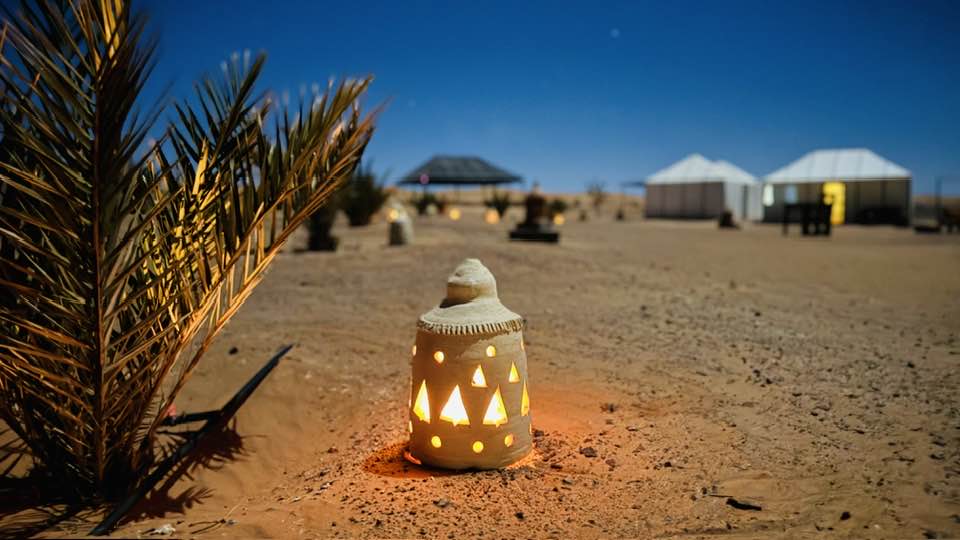 Dopodiché, ci dirigeremo verso i nomadi dietro le dune di Merzouga, dove avremo la possibilità di visitare alcune famiglie di nomadi e conoscere il loro stile di vita. Dopo pranzo, visiteremo l’oasi di Hassi Lbeid prima di rientrare all’accampamento per le attività di consapevolezza della serae poi deliziarci in una deliziosa cena – Sahara Happy Camp.